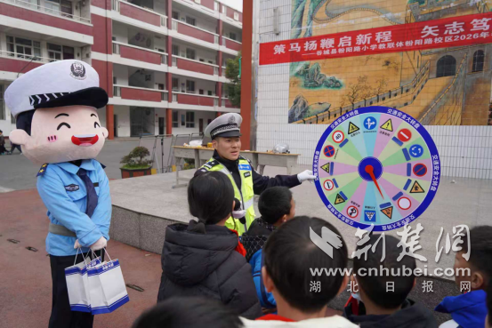 荆楚网(湖北日报网)讯(通讯员 邹静宇)为切实筑牢新学期校园交通安全防线,增强广大学生交通安全意识和自我防护能力,2026年3月4日上午,谷城县公安局交通管理大队组织民辅警深入谷城县粉阳路小学,开展“交通安全开学第一课”宣传活动,以生动有趣的方式把“安全课堂”搬进学校校园。