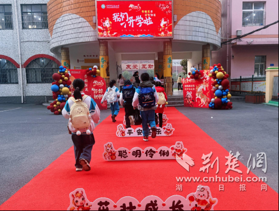 荆楚网(湖北日报网)讯(通讯员 赵继 杨晗)2026年春季开学第一天,钟祥市郢中街道办事处莫愁小学校园内处处洋溢着喜庆热烈的氛围,全校师生以饱满的精神状态,共同开启了充满希望的新学期。