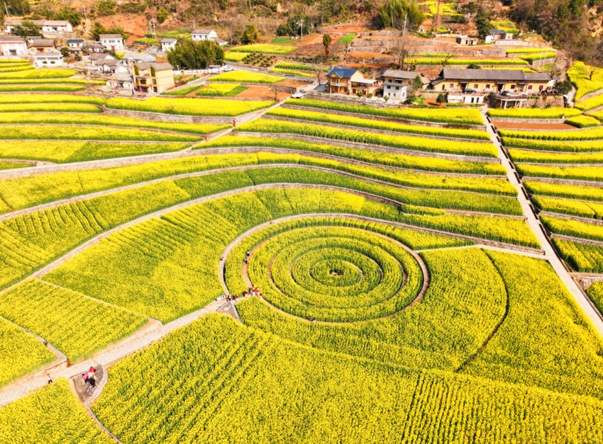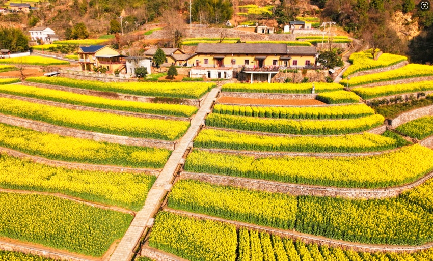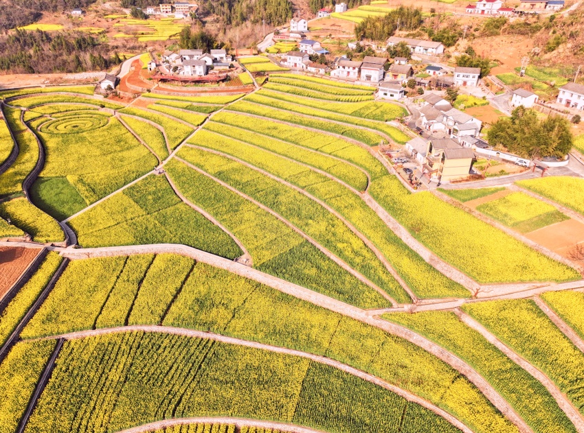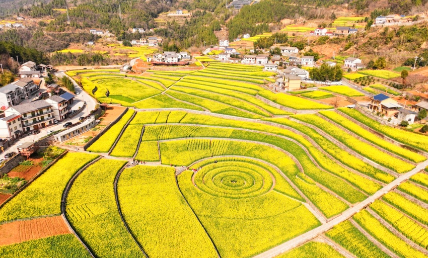 这片让游客沉醉的花海,如今已成为龙池村名副其实的“致富花”。近年来,龙池村打破传统油菜种植模式,引导村民规模化种植油菜,并邀请专业团队对花田景观进行整体规划升级,打造梯田观景步道、亮化灯花海打卡点等设施,让昔日的农田变身网红旅游目的地。