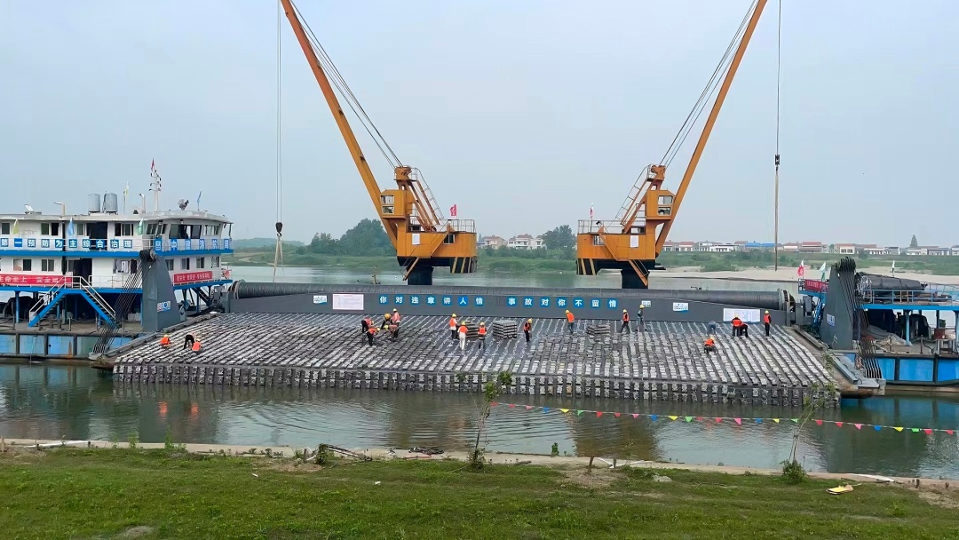 湖北天门兴隆水利枢纽下游,施工船舶缓缓靠岸——汉江兴隆至蔡甸段2000吨级航道整治工程首个标段,于2月下旬顺利交工验收。
