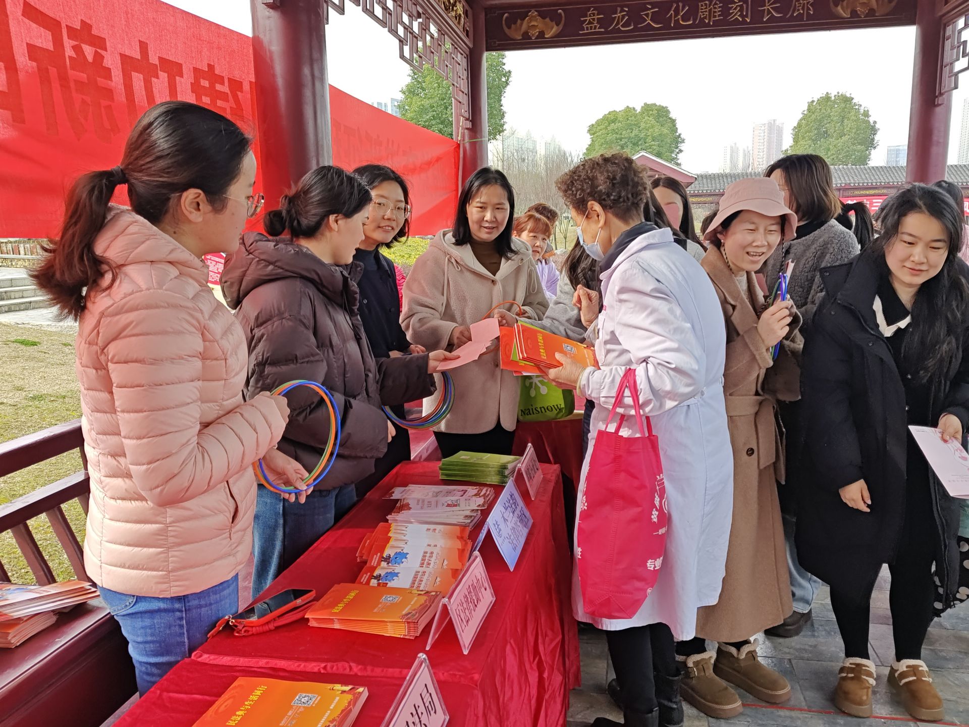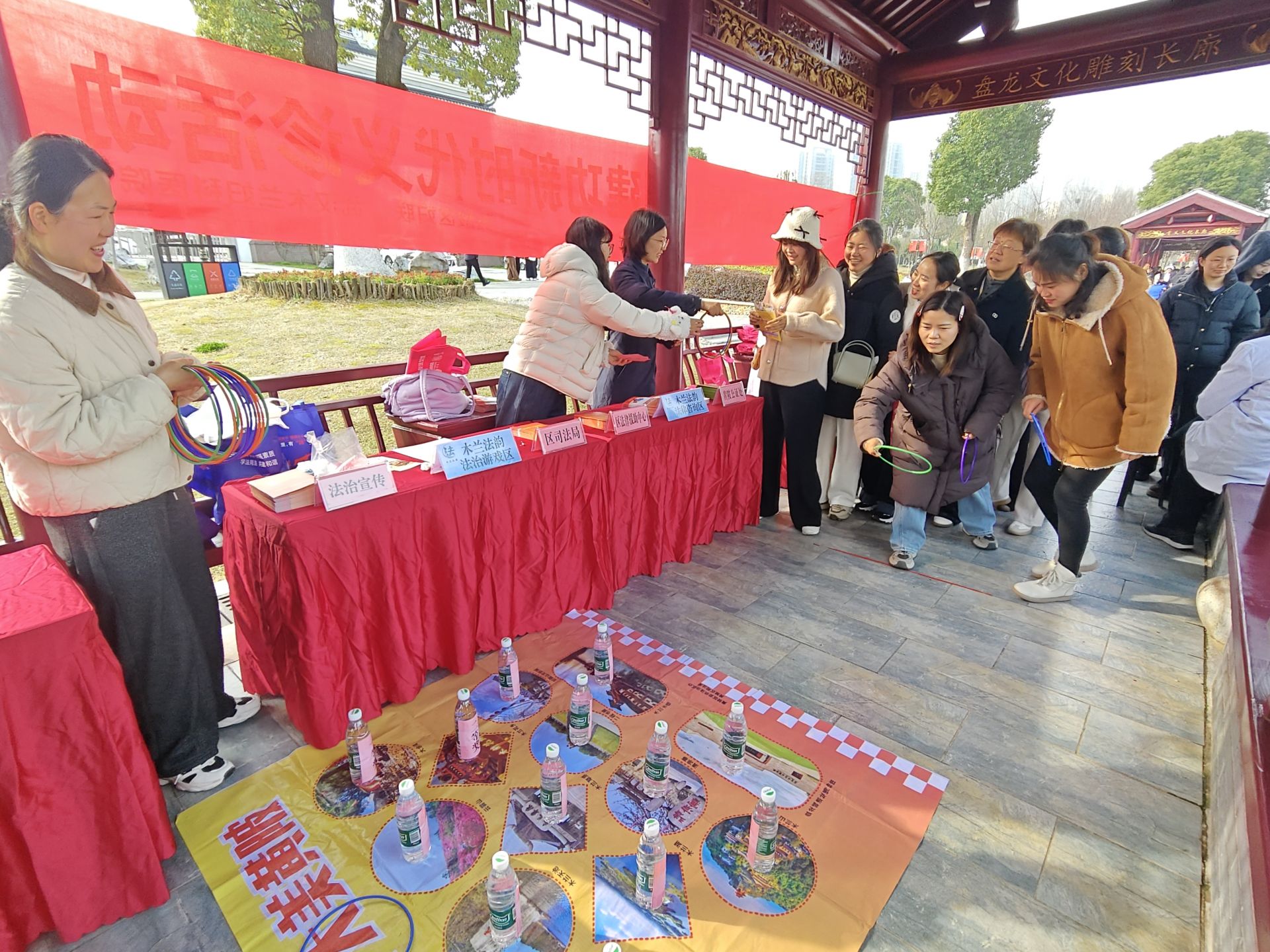 为提升普法宣传的趣味性和吸引力,活动专门打造“木兰法韵”法治游戏区,设置“法律问答+套圈赢奖”趣味互动环节,将黄陂文旅地标融入游戏背景,实现木兰文化与法治宣传的深度融合。互动问答题目紧扣《中华人民共和国民法典》《中华人民共和国妇女权益保障法》《中华人民共和国反家庭暴力法》等与女性权益密切相关的法律法规,参与者通过回答法律问题赢取套圈参与游戏,在欢声笑语中加深对法律法规的理解和记忆,让法律知识入脑入心,有效提升了女性群体的法治知晓率和学法积极性,达到了“玩中学、学中记”的普法实效。