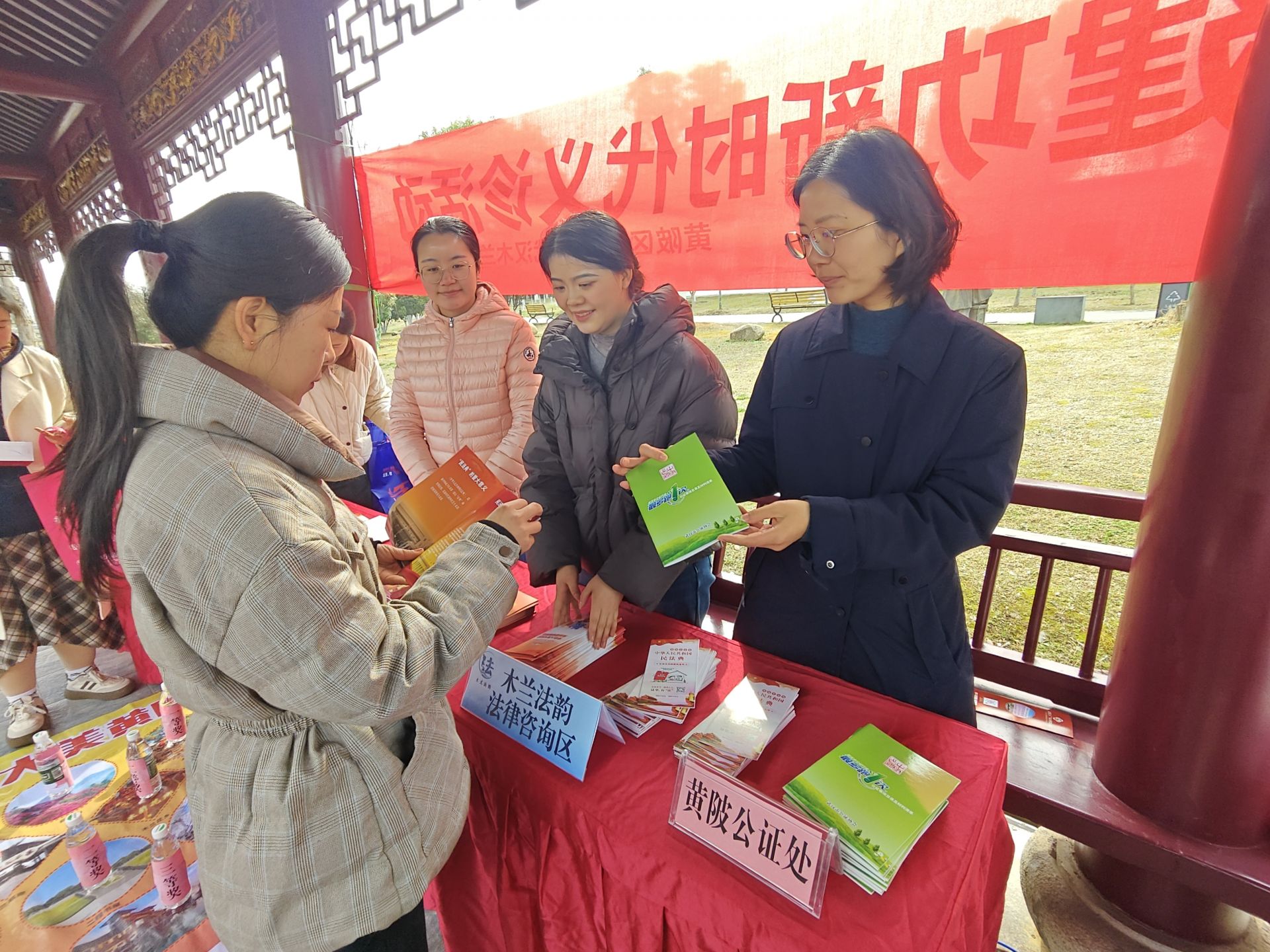 荆楚网(湖北日报网)讯(通讯员 安澜)在第116个“三八”国际妇女节来临之际,3月6日,黄陂区司法局携手区妇联、区总工会、团区委、前川街道在定远公园开展全区“三八”国际妇女节主题活动,精心布置“木兰法韵”法治宣传专区,以“专业咨询+趣味普法”的创新形式,为广大女性同胞送上实用的“法治节日礼”。