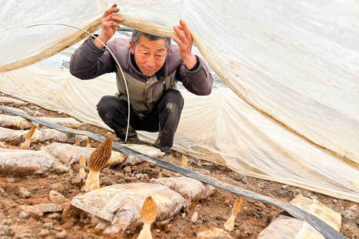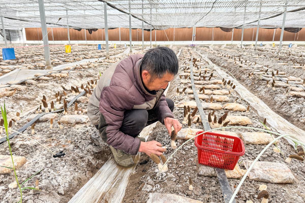 2026年3月6日,在武汉市东西湖区农投集团现代农业生产示范园羊肚菌大棚内,工人正在采摘羊肚菌。近日,对生长环境超挑剔的羊肚菌,在武汉东西湖成功量产,通过商超走上市民餐桌。据介绍,该示范园靠智能控温技术,打破气候限制,搭配年产400万包的智能菌棒厂,打通“制包—种植—销售”全链条,首批新鲜羊肚菌新鲜上市,直达市民餐桌。同时,东西湖区农投集团还联手科研团队,升级平菇等常规菌种,推广“集中制包、分散出菇”模式,以智慧种植做强本地食用菌产业,让市民吃上高品质本地鲜菌。(湖北日全媒记者 倪娜 通讯员 方懿 赵伟伟 摄)