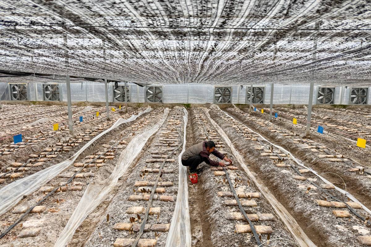 图为连动大棚搭配智能温控为羊肚菌生长提供有利条件。