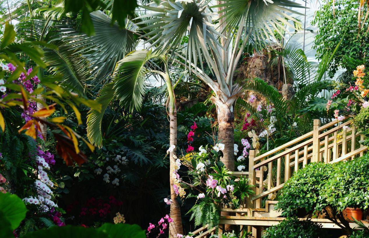 春光正当时,武汉植物园内已是百花争艳,生机盎然。景观温室内,上万株热带兰花正绚丽盛放,汇聚成一片缤纷的花海。蝴蝶兰、石斛兰、卡特兰等上百种珍奇花卉,与温室内蓊郁的绿意交织,营造出春意融融的奇妙景致。春日的信使也已然抵达,园内收集的10余种、80余株玉兰正迎来最佳观赏期。白玉兰皎洁如月,宝华玉兰粉若云霞,二乔玉兰紫白相间,为园区增添无限诗意。