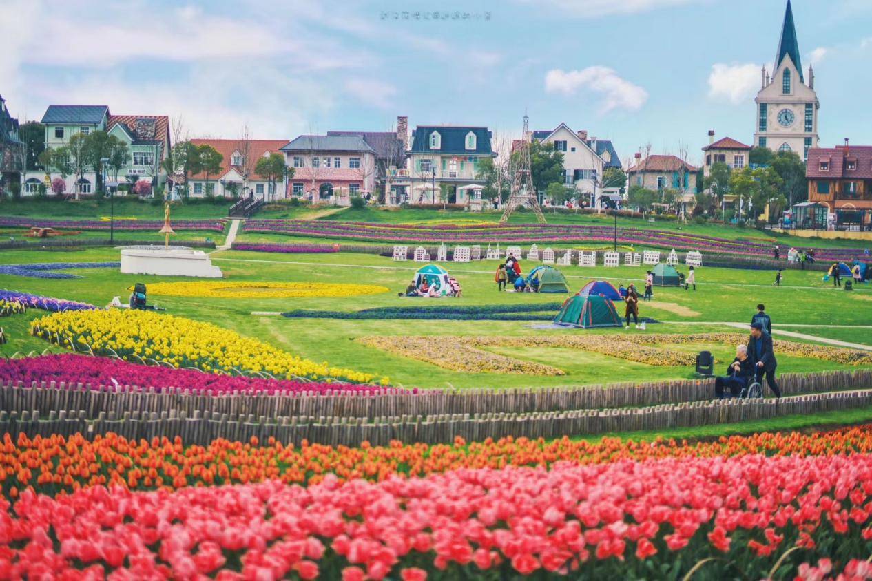 近20万株郁金香开放 织成“彩虹海”