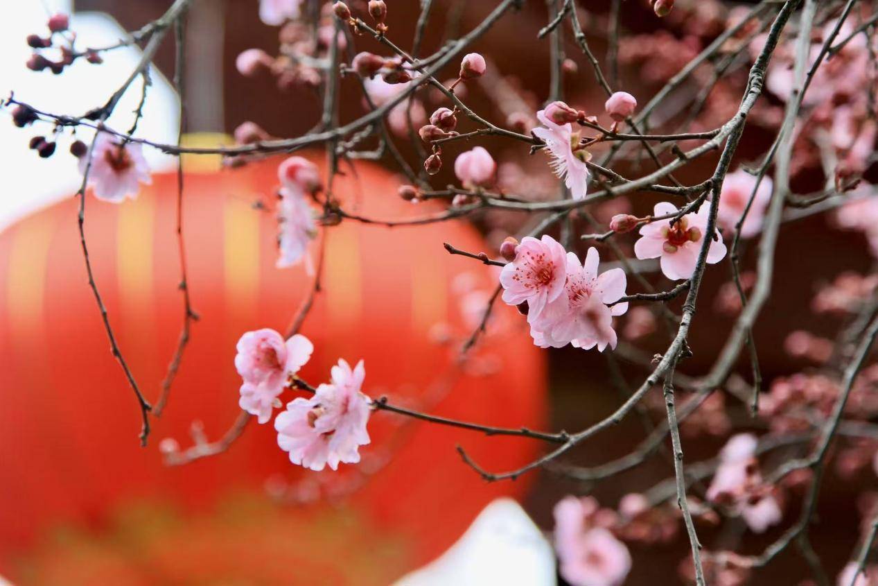 作为全国四大梅园之一的武汉东湖梅园,园内晚花精品美人梅已陆续绽放,枝头繁花初绽。美人梅花色淡紫、花型重瓣,姿态柔美,是梅花季压轴登场的晚花品种。