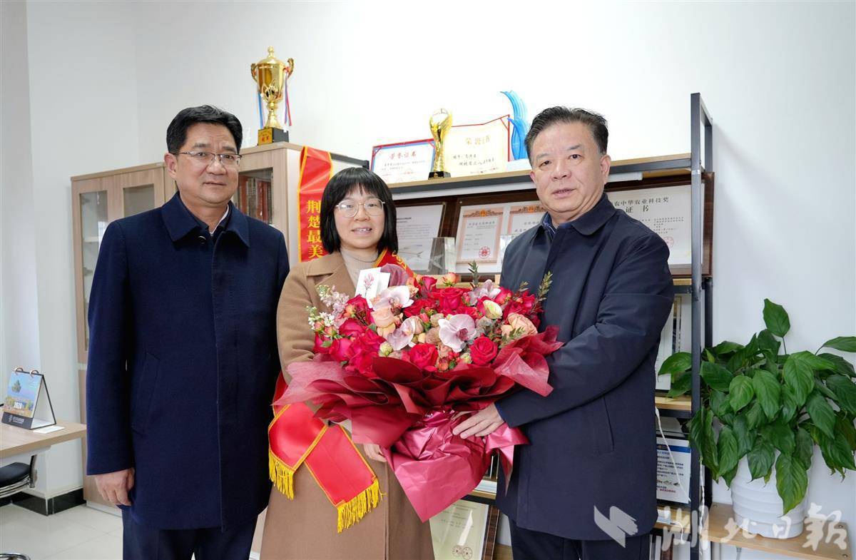 校领导为高泽霞教授送上节日祝福(学校供图)