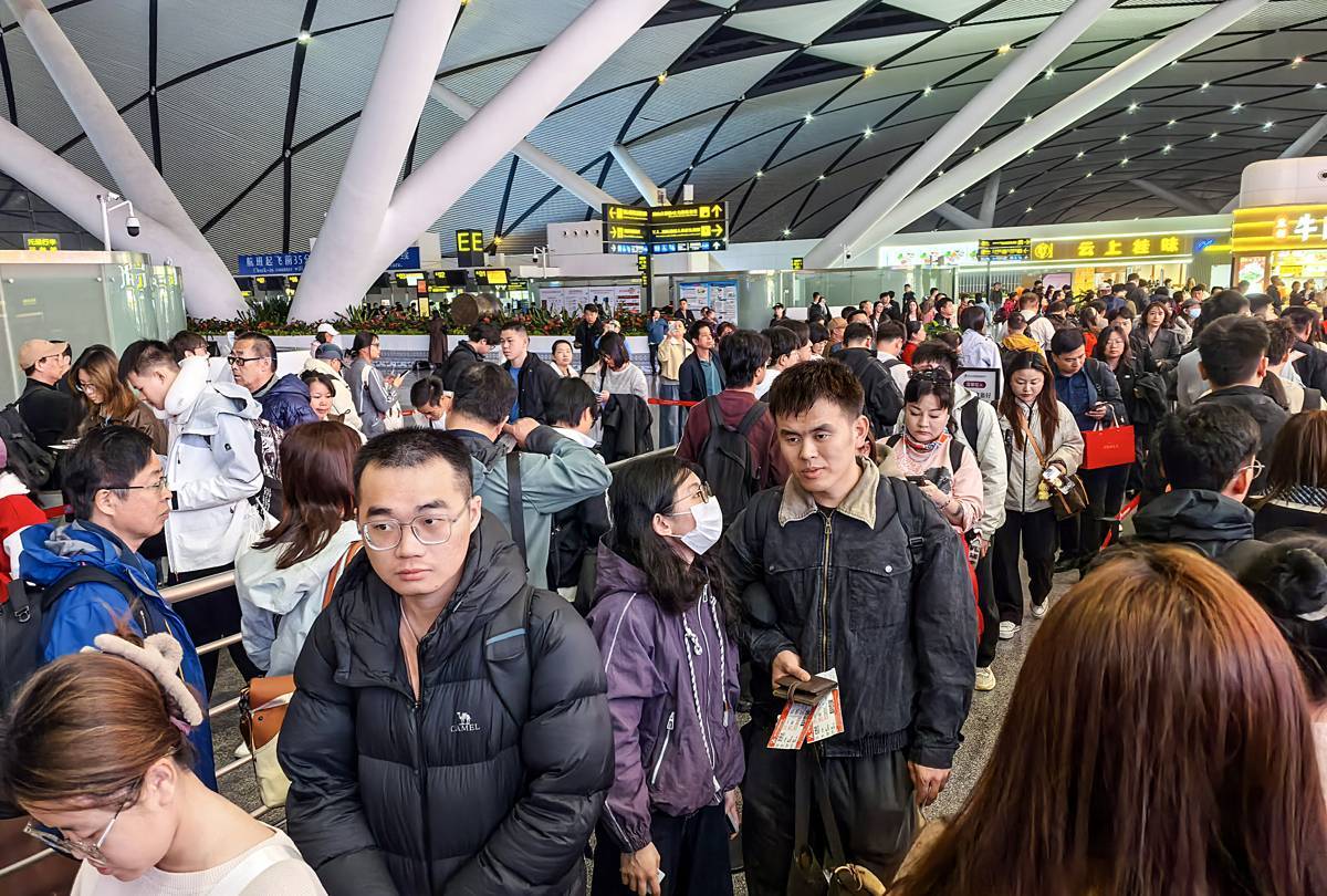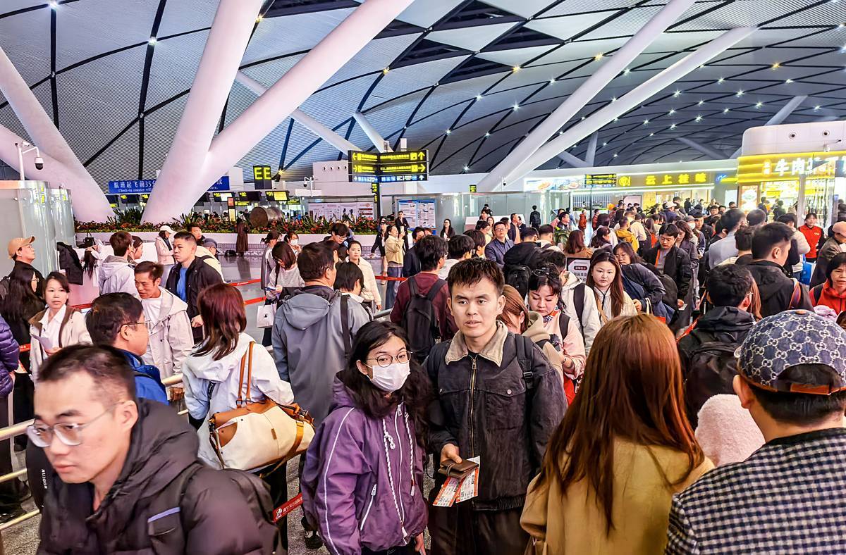 3月7日7时许,记者在南宁吴圩机场看到,安检处排着长龙,数百人同时在等待着安检。“平时一定要安检仅花几分钟,今天竟然花了20分钟才行。”一位乘坐CZ6317航班的江先生说。据了解,元宵节一过,国内各大院校陆续开学,与节后用工热叠加,铁路、航空迎来了又一轮客流高峰。(湖北日报全媒记者 朱熙勇 摄