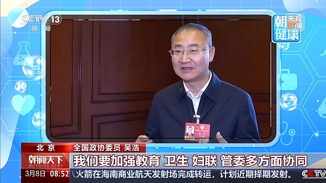 全国政协委员 吴浩:我们要加强教育、卫生、妇联、管委多方面协同,明确家庭、学校、医院和社区的责任。我们建立常态化的筛查预警体系,依托人工智能来构建全国比较统一的青少年心理健康智能化监测平台,从而实现为学校提供相关的技术支持,对孩子们进行定期筛查,建立一生一策电子心理档案,强化对特殊人群的特殊关怀、个性化防治。