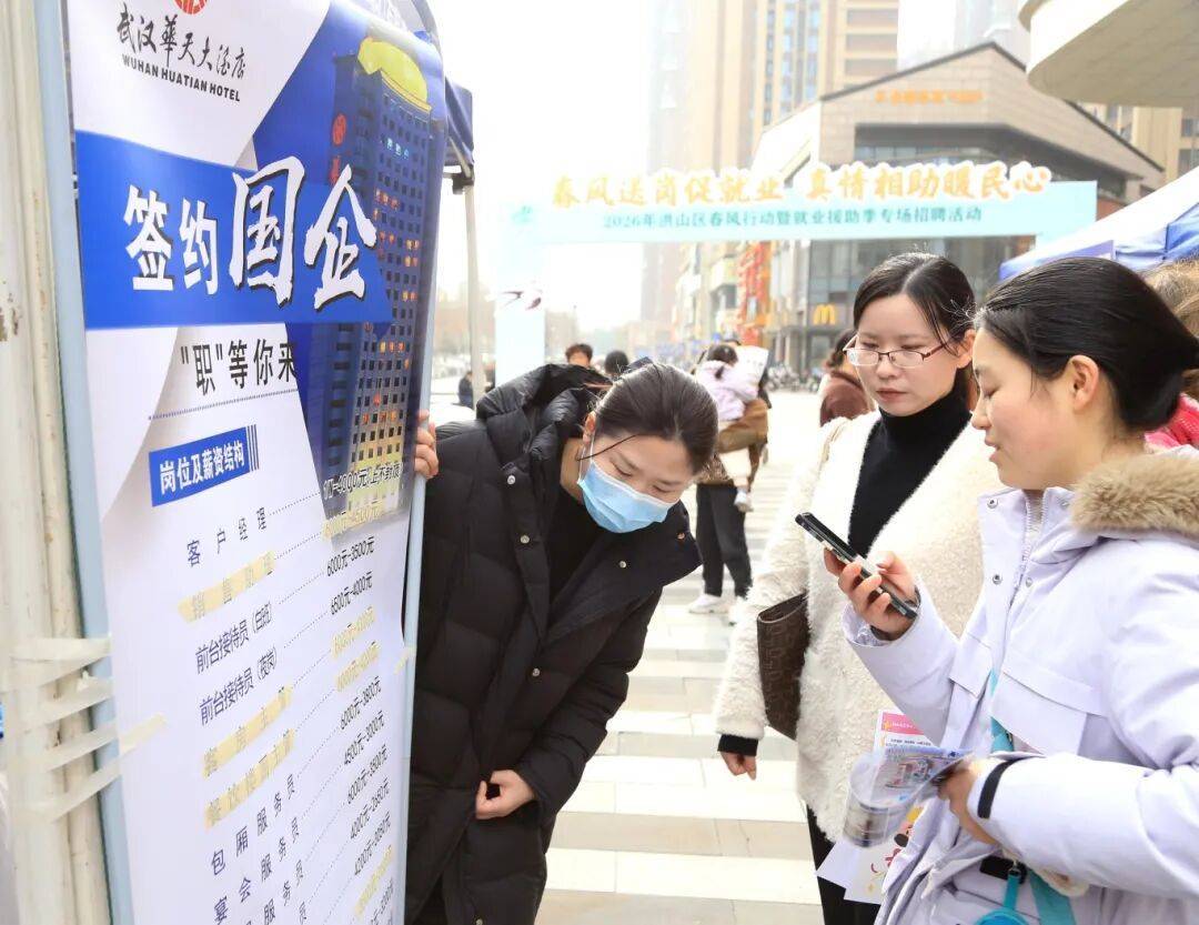 湖北日报客户端讯(肖满、胡权、肖啸龙)3月6日,“春风送岗促就业 真情相助暖民心”——2026年洪山区春风行动暨就业援助季和平街金地广场专场招聘会举行。洪山区人力资源局聚焦一季度“开门红”十大行动,为企业和求职者搭建对接平台,为区域就业市场注入新活力。