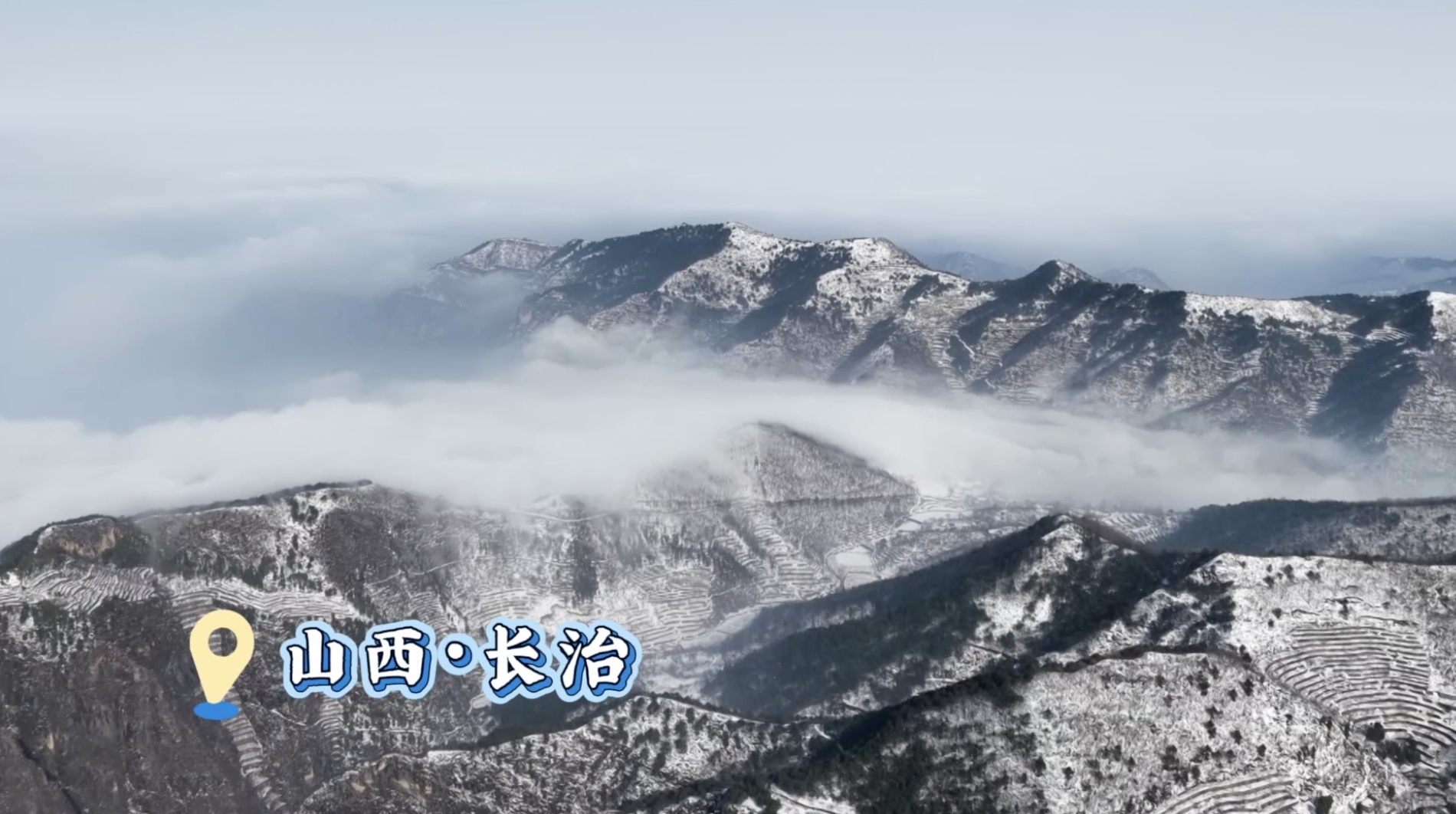 穿过云雾,层层叠叠的梯田与山村在春雪的装扮下,宛若大地纹理,雪中透着春韵,如此难得一见的春日景观,每一帧都可收藏当壁纸。