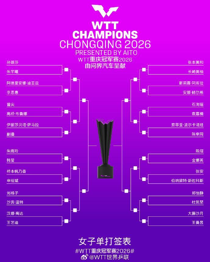 孙颖莎对阵韩国选手朱芊曦,蒯曼将战罗马尼亚选手萨马拉,王艺迪VS汉娜高达, 石洵瑶VS袁嘉楠,陈幸同VS波尔卡诺娃,陈熠VS金娜英,王曼昱对阵大藤沙月。
