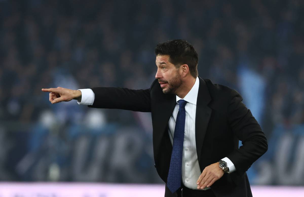 武汉三镇队主教练本杰明·莫拉在场边指挥。(湖北日报全媒记者 柯皓 摄)