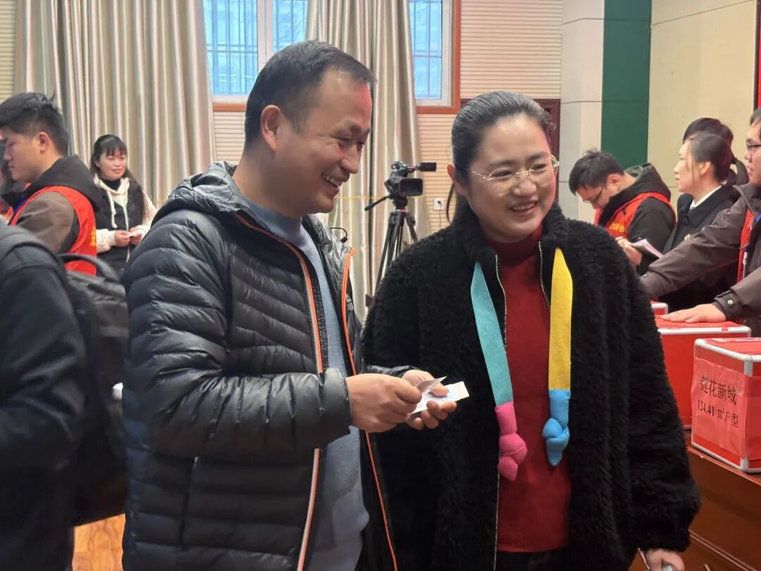 现场气氛热烈,欢笑不断。“太幸运了,我抽到5楼,这个楼层好,有个大平层!”安置户周波在确定房号后,喜悦之情溢于言表。整个流程井然有序、公开透明,在鄂州市司法局公证处全程监督录像下,在街道纪工委和莲花九组监事会代表共同见证下,67套房源顺利找到“新主人”。