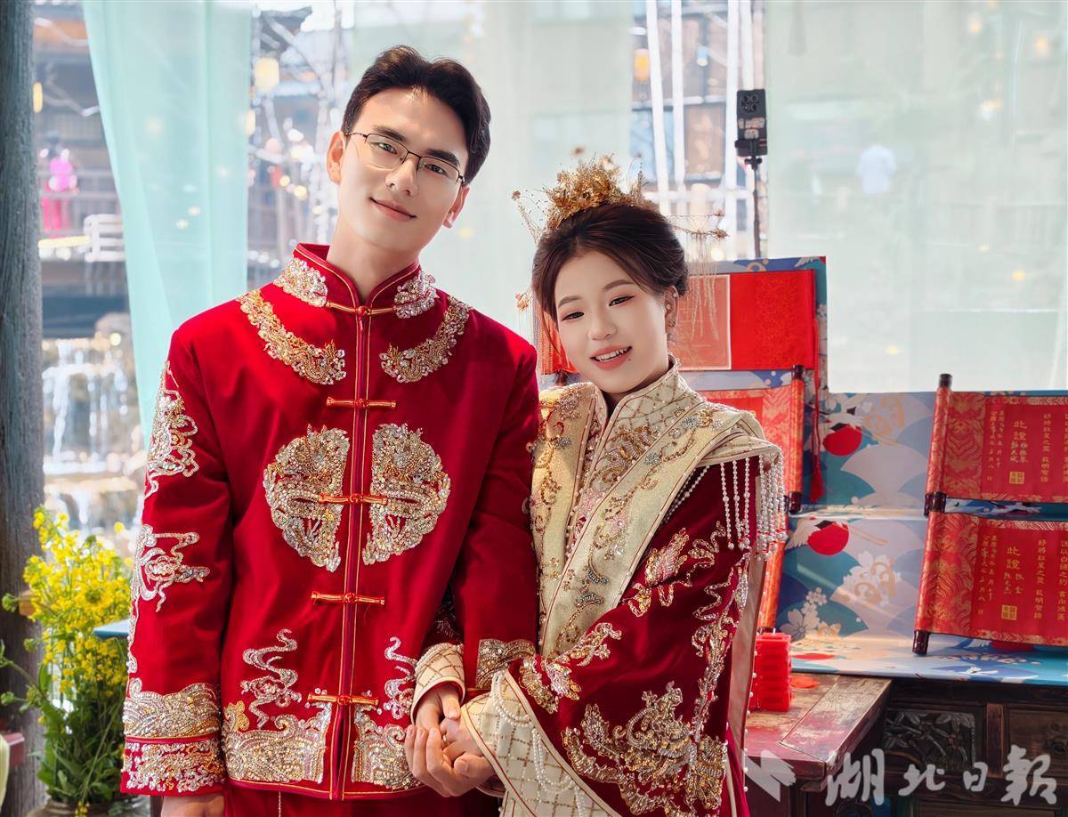 这场集体汉婚不仅是爱情的见证,更是江夏里推进移风易俗、倡导婚事新办的一次创新实践。庄重的传统礼仪,既保留中华文化底蕴,又摒弃铺张浪费和低俗婚闹,让文明新风在仪式感中浸润人心。活动现场,由街区商户和社区文艺骨干组成的“新风尚志愿服务队”全程参与,为游客讲解“合卺”寓意、“婚书”渊源等。来自黄陂的刘女士一边直播一边感叹:“今天带孩子来,不仅饱了眼福,更上了一堂生动的家风家训课。”