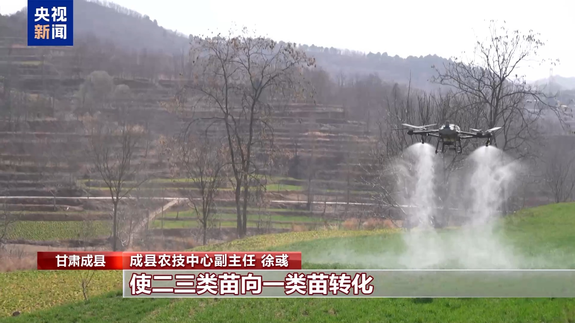 成县农技中心副主任 徐彧:当前主要做好“三情”调查,土壤墒情和苗情以及病虫情调查,根据苗情生长情况,进行叶面追肥,喷施植物生长调节剂。从调查情况来看,今年受到阴雨天影响,二三类苗比较多,最近喷施叶面肥和植物生长调节剂,使二三类苗向一类苗转化。