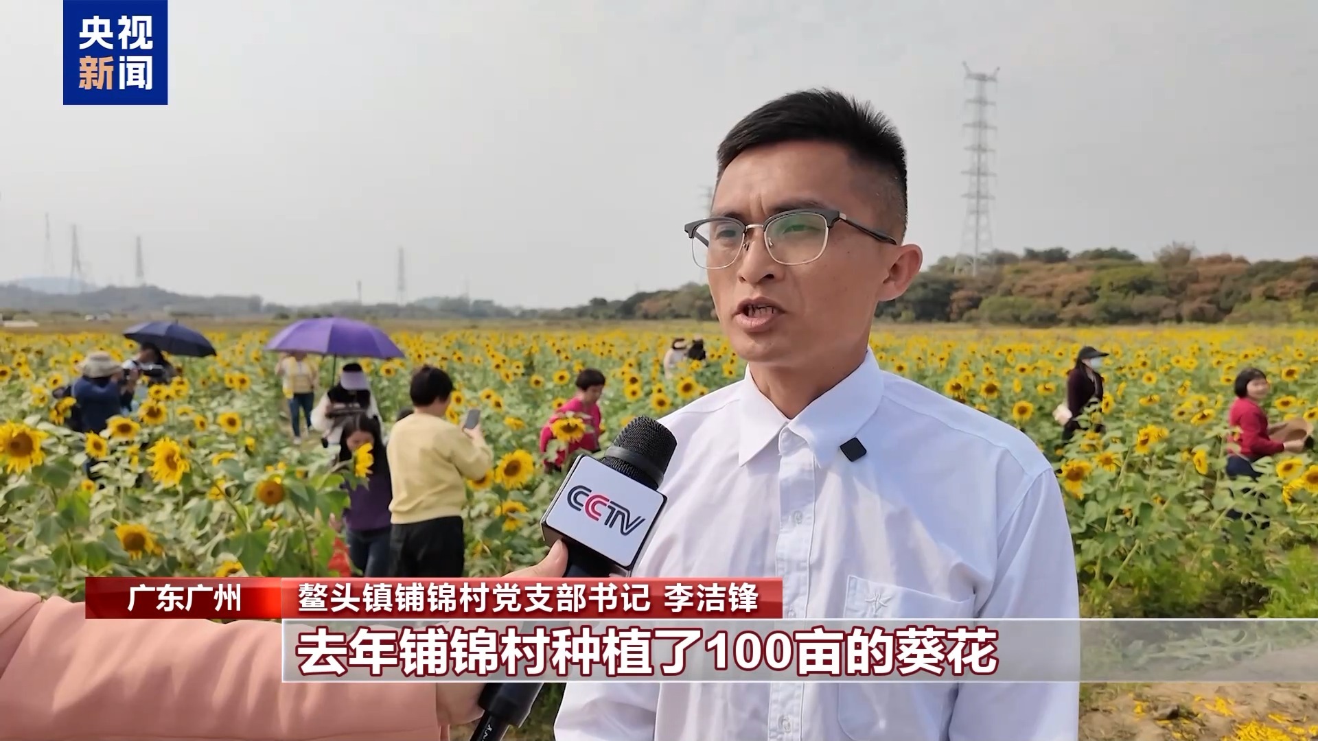 鳌头镇铺锦村党支部书记 李洁锋:去年铺锦村种植了100亩葵花,打造了葵园,带动了鳌头镇58家农家乐和30多家民宿的消费。同时,周边的村民还可以把一些自家土特产带到集市上销售,销售情况非常好。