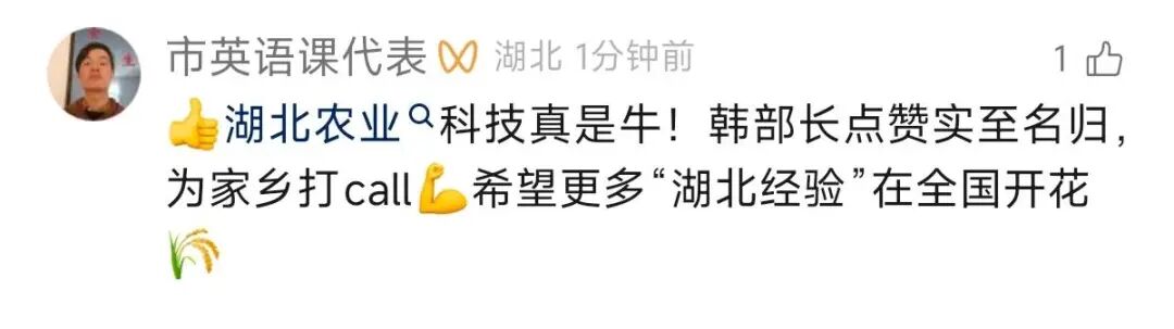 “农业根本靠科技,你们武汉、湖北做得不错!”