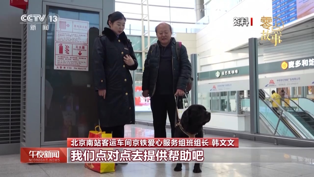 北京客运段列车长 官淼:现在随着铁路,包括社会上对视障旅客的关心关爱,配套设施的完善,可以说是全程无忧了。我们接到工单以后,从他进站乘车,包括中转换乘、到站,都是有专人对接。