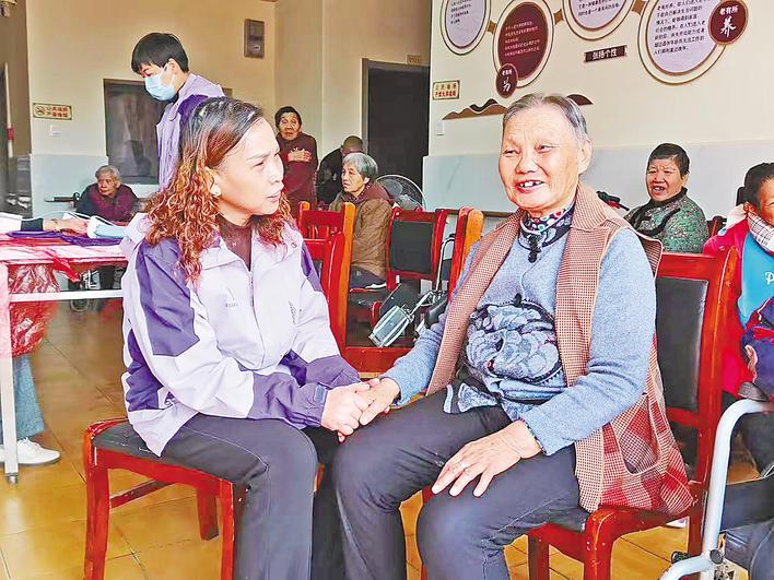 朱丰姣在敬老院看望老人。