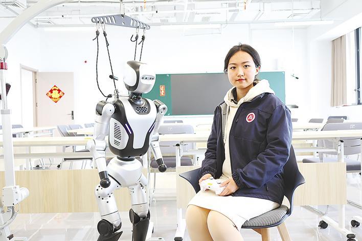 王诗韵调试人形机器人。