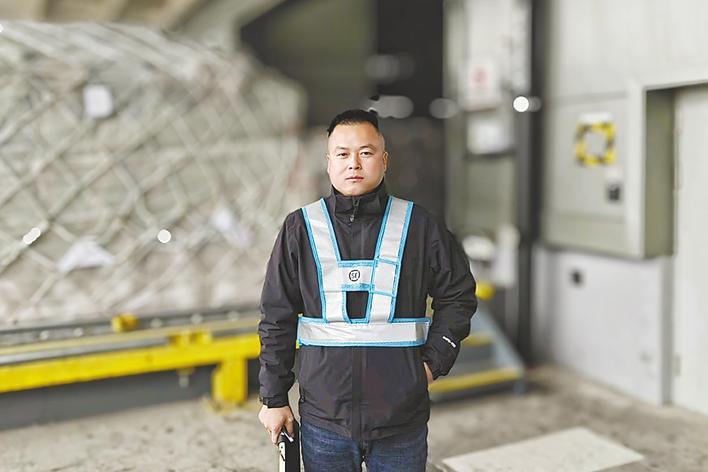 “我们家以前的田地,就在机场塔台那一片。”32岁的张千也是这场空港蝶变的亲历者。原住燕矶镇坝角村的他,曾常年在外辗转务工,收入不稳,更无法陪伴儿女。机场启动建设后,村委会带来了拆迁安置与优先就业的好消息,张千下定决心结束漂泊。从一名普通的分拣搬运员做起,他凭借踏实肯干、勤于钻研,短短两年便成长为口岸运营主管,月收入过万。采访仅有10分钟,间隙里他便接听了5通工作电话。电话中,他对航空物流业务的答复专业严谨,尽显岗位风采。