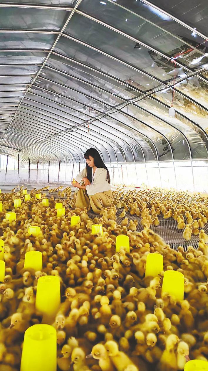 田淑娴在大棚检查鸭苗。(受访者供图)