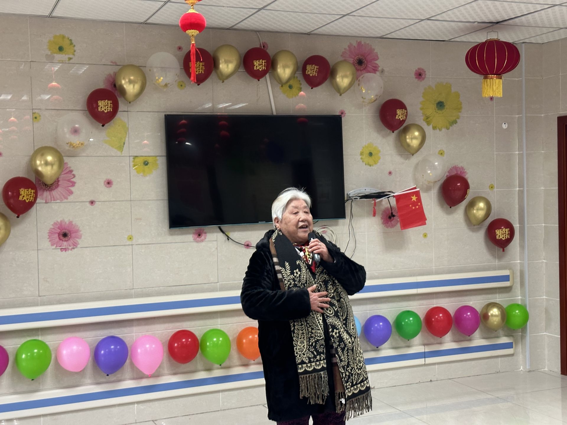 联欢会现场精彩纷呈,节目形式多样、内容丰富。程从瑜、郭淑芬、黄瑾、邓少华四位奶奶带来的《陪你一起看草原》率先登场,婉转的歌声传递出草原的辽阔与舒展;随后,陈林枝奶奶演唱的《母亲》深情婉转,李芳仙奶奶朗诵的《我的祖国》激昂真挚,字字句句都饱含着最朴素的情感,深深打动了现场每一位观众。黄瑾奶奶的《我爱你塞北的雪》勾勒出山河的壮美,游桂兰演唱的《咱们工人有力量》铿锵有力、振奋人心;凌兰先、左德英两位奶奶带来的《蜗牛与黄鹂鸟》等经典儿歌,旋律轻快,唤起了在场所有人的童年记忆。最后,工作人员与老人们携手大合唱《新年好》,欢快的歌声响彻全场,将活动气氛推向顶峰。