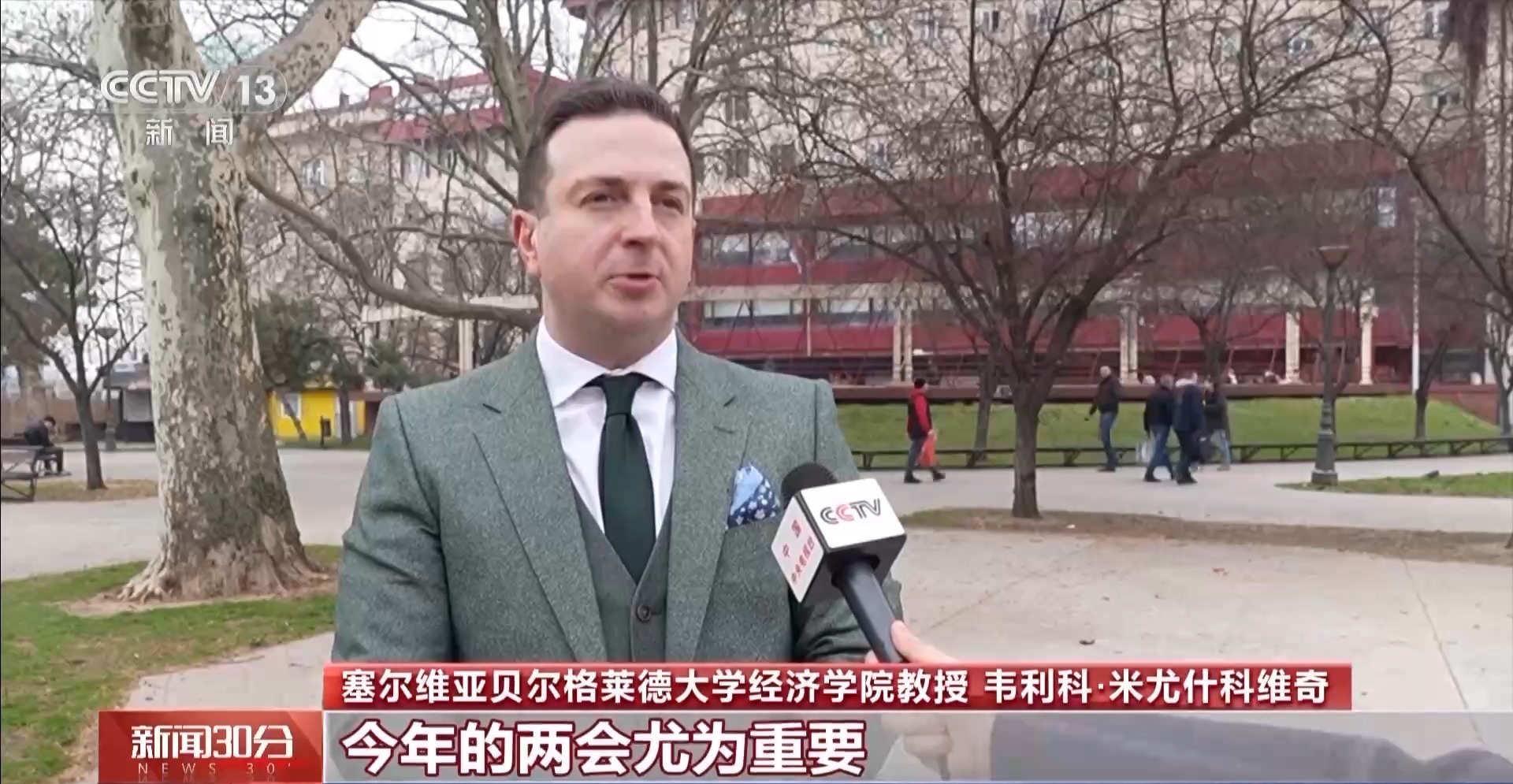 塞尔维亚贝尔格莱德大学经济学院教授 韦利科·米尤什科维奇:今年的两会尤为重要,下一个五年规划要出台。中国独有的经济发展模式已被证明是行之有效的,未来中国的数字经济和绿色发展等领域前景广阔。中国是塞尔维亚重要的合作伙伴,希望中国继续扩大高水平对外开放,维护多边贸易体系,期待塞中两国进一步深化拓展重要领域的合作。
