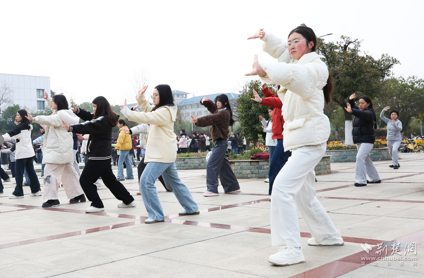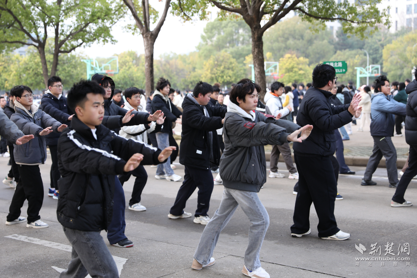 荆楚网(湖北日报网)讯(记者何鹏 通讯员陈依、胡梦佳)新学期伊始,清晨的校园里,太极拳晨练如期展开。同学们准时到达指定场地,列队整齐,跟随音乐缓缓起势,秩序井然,展现了良好的精神风貌。