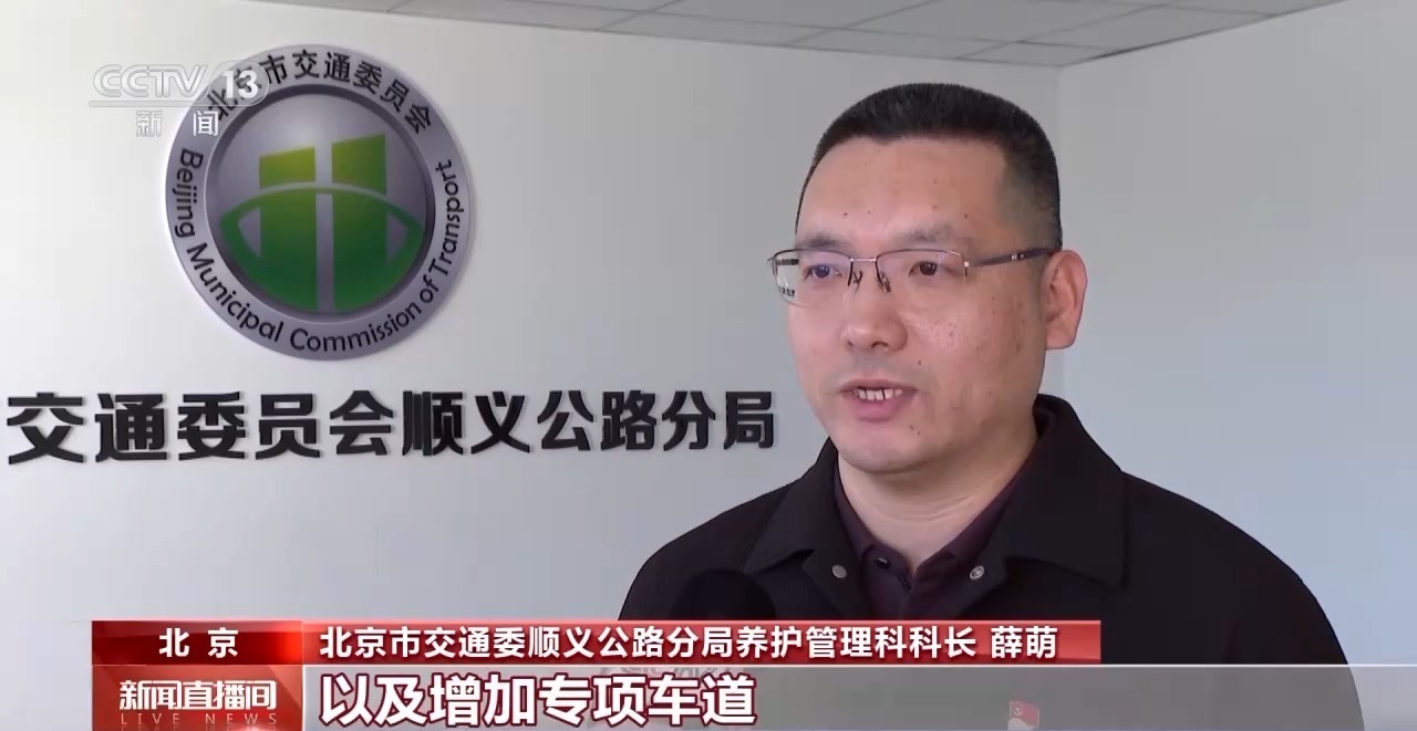 北京市交通委顺义公路分局养护管理科科长 薛萌:后续我们还会在路口综合治理以及增加专项车道,同时还会进一步优化信号灯的配时,让信号灯路口与路口之间进行“绿波”联动,通过这些措施不断让交通更加顺畅。