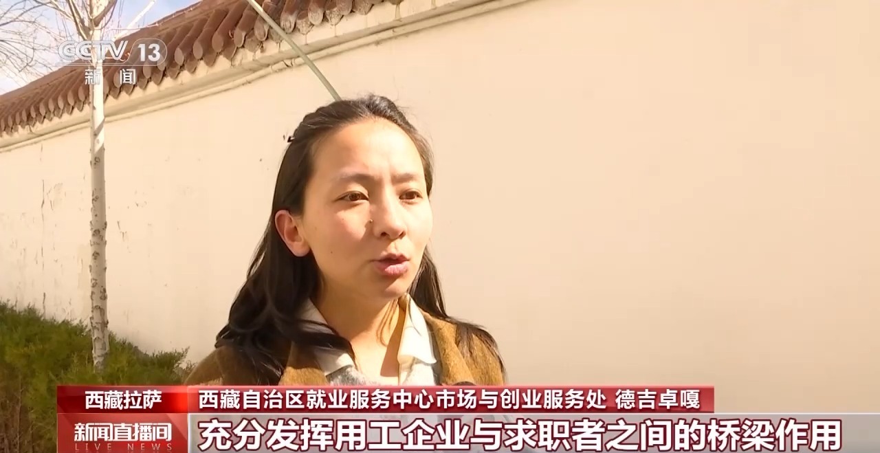 西藏自治区就业服务中心市场与创业服务处 德吉卓嘎:下一步我们将加强与企业用工对接,充分发挥用工企业与求职者之间的桥梁作用,优化招聘服务力度,提高对接率,努力实现充分就业。