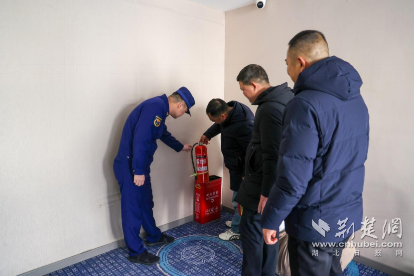荆门市掇刀区消防监督员深入沿街商铺,对室内消防器材进行随机抽查。魏欢欢 摄