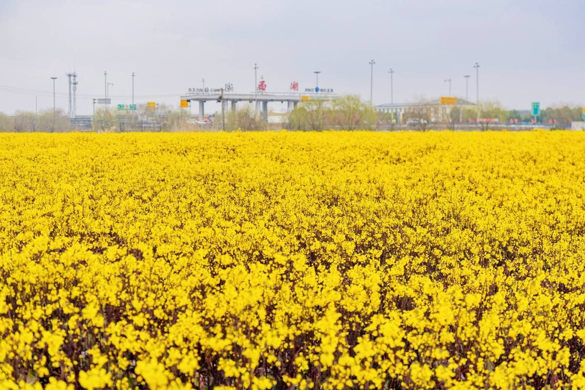 这片令路人惊艳的花海,位于东西湖区“四线一口”西湖收费站出口与油沙路交会处,约有300亩,是东西湖区柏泉街于2025年倾力打造的特色农产品——洪山菜薹种植基地。