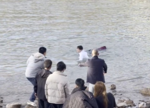3月6日下午,甘肃兰州中山桥下,一名落水者头朝下漂浮在水面上。谈磊正和友人在附近散步,听到呼救声说有人落水,赶紧跑到岸边。此时岸上已经聚了几十人,有人高声呼救,有人拨打电话,还有人拿着绳子从远处飞奔而来,试图拉回落水者。