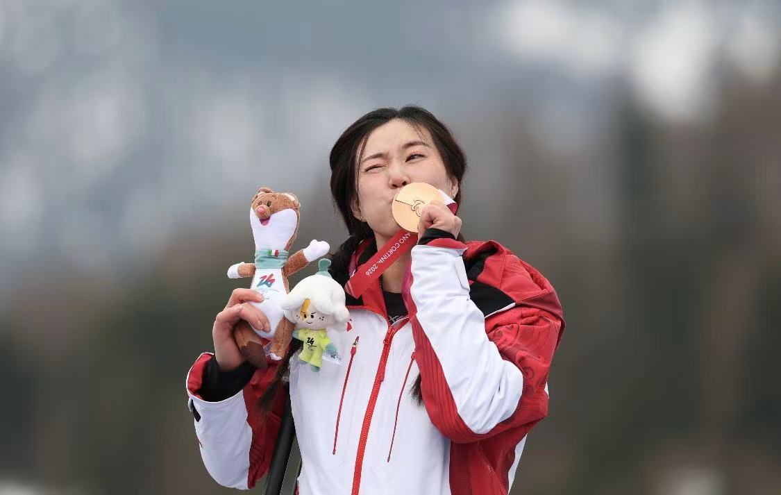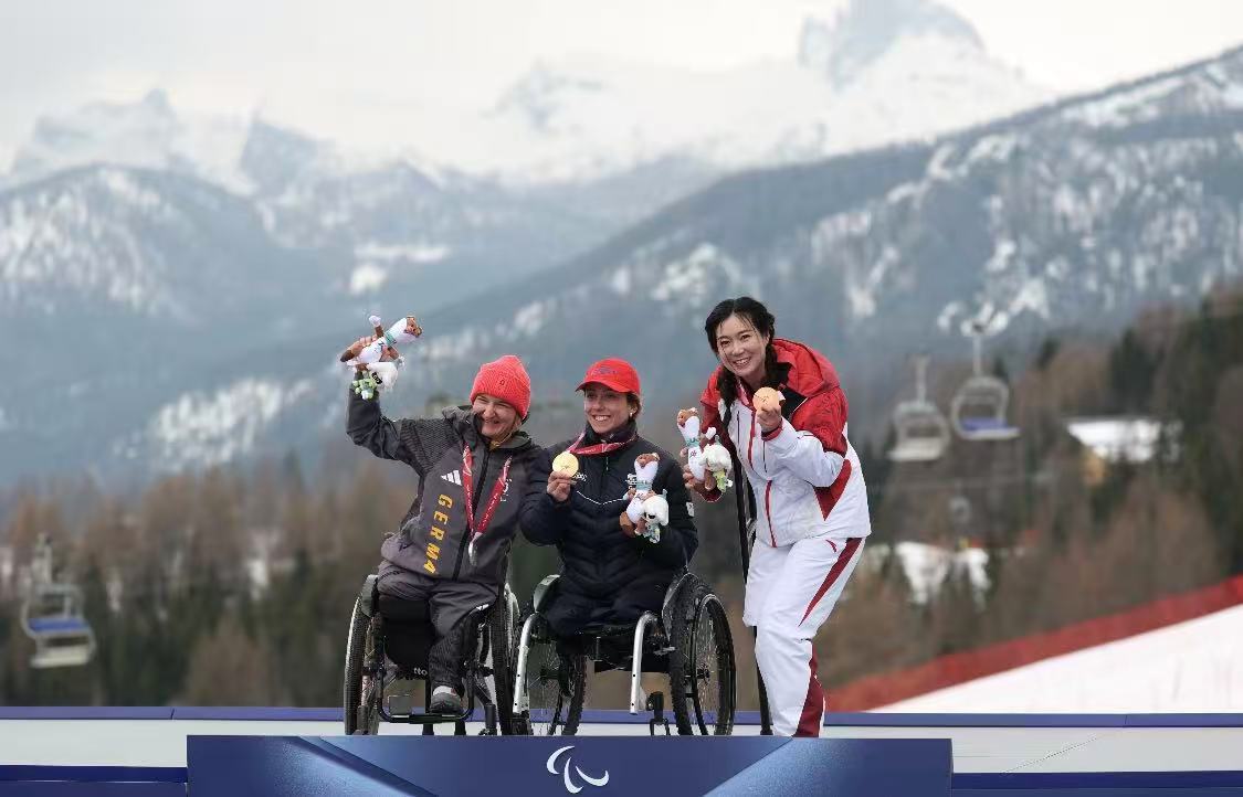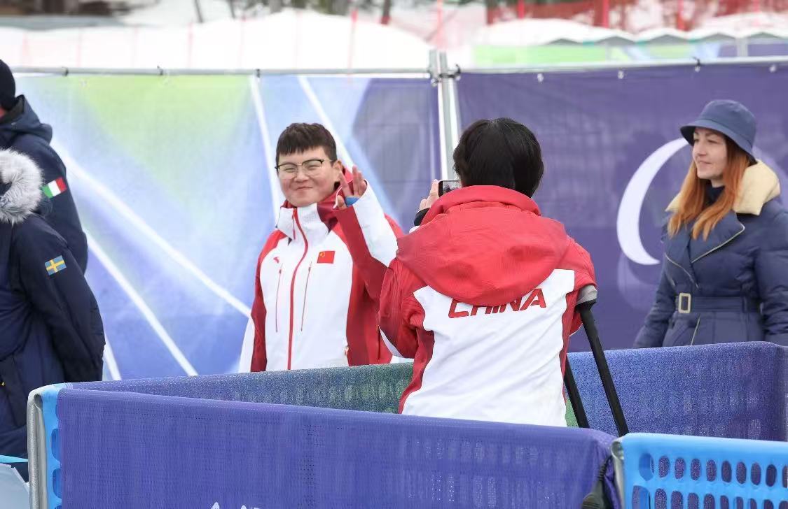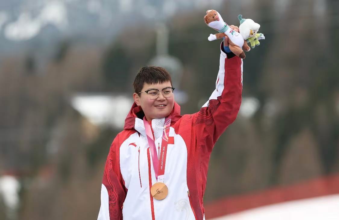 当地时间3月10日,中国选手朱文静夺得米兰—科尔蒂纳冬残奥会高山滑雪女子超级全能站姿组铜牌。 本报记者陶相安 摄
