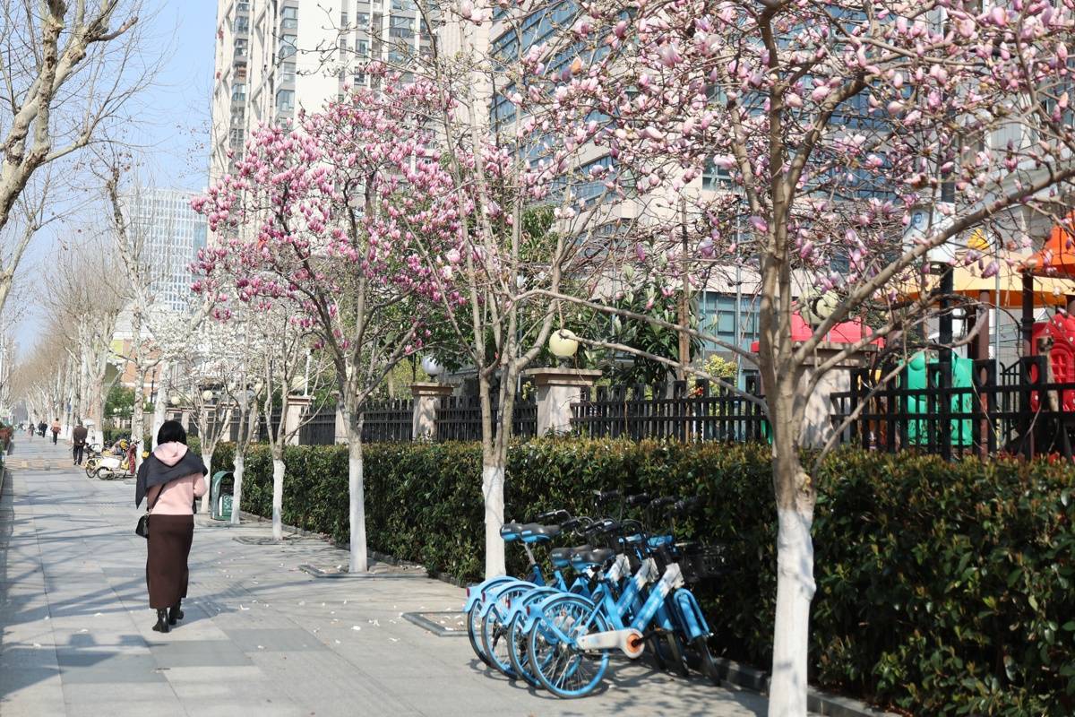 花映城市美,香满幸福城。连日来,此番情景也出现在团结大道路段。人们或驻足抬头,用手机定格枝头繁花;或漫步花下,轻嗅淡淡花香;或与家人好友合影留念,将春日美好收藏心间。热闹的烟火气与清雅的玉兰花香交织,绘就一幅生动的春日民生图。