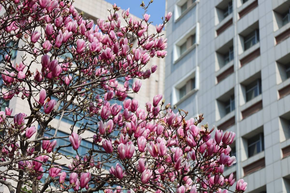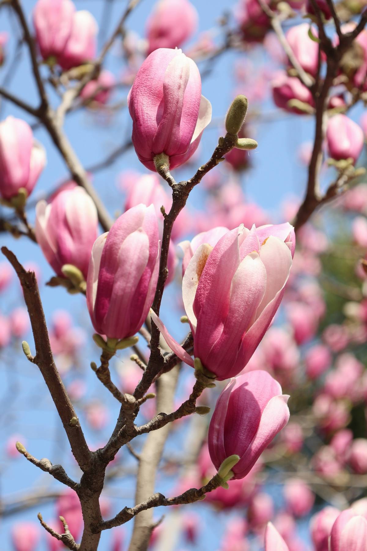 “无需远郊寻春,城市街头便是盛景,这片玉兰花太漂亮了。”3月10日上午,路过文治街的刘先生颇有一番感慨。只见连片的玉兰树沿道路舒展生长,枝头不见新叶,先绽繁花,花瓣洁白中透着淡粉,紫艳中藏着清雅,在蓝天映衬下格外动人。花朵硕大饱满,或含苞待放、或肆意盛开,层层叠叠、绵延不绝,远远望去,宛如一条飘逸的花带,勾勒出洪山独有的春日轮廓。