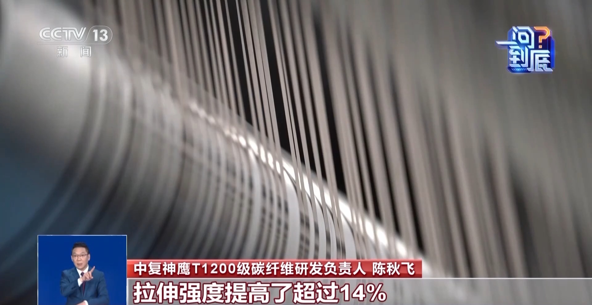 中复神鹰T1200级碳纤维研发负责人 陈秋飞:这款超高强度碳纤维与上一代T1100级相比,拉伸强度提高了超过14%。T1200级碳纤维凭借着极致的轻质高强的特点,能实现相关领域装备减重10%以上。在商业航天、低空经济、人形机器人等战略性新兴产业有着非常广阔的应用前景。