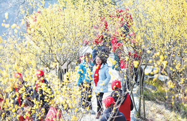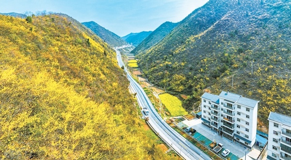 大柳乡连翘花盛开扮靓山林。记者潘世新摄
