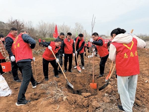扶苗、填土、浇水……当日8时许,植树现场一派火热景象,大家共同栽种的一株株新苗迎风挺立,焕发出勃勃生机,为初春的大地增添了一抹盎然绿意。活动当天,共完成造林面积500亩,栽植八里旺樱桃、侧柏等优质苗木9000余株。