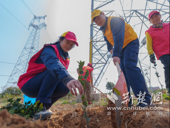 “在植树节来种油茶,感觉特别不一样。”志愿者、国网武汉市黄陂区供电公司团委书记尹恭禾擦去额头的汗珠,笑着说:“我们亲手种下的,既是守护电网的‘安全锁’,也是能给村里带来财富的‘金果果’。一想到这些小树苗将来既能护佑线路平安,又能变成乡亲们口袋里的收益,就觉得这一锹土挖得特别有意义。”