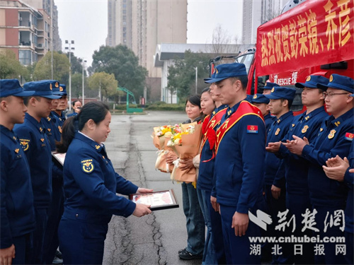 荆楚网(湖北日报网)讯(通讯员 李娜 李江旭)为表彰先进、树立典型,持续激发全体指战员争先创优的内生动力,进一步凝聚队伍战斗力,近日,湖北省襄阳市襄城区消防大队组织开展“送奖到岗”活动,将荣誉与关怀直接送到立功指战员手中,以榜样力量引领队伍实干笃行。