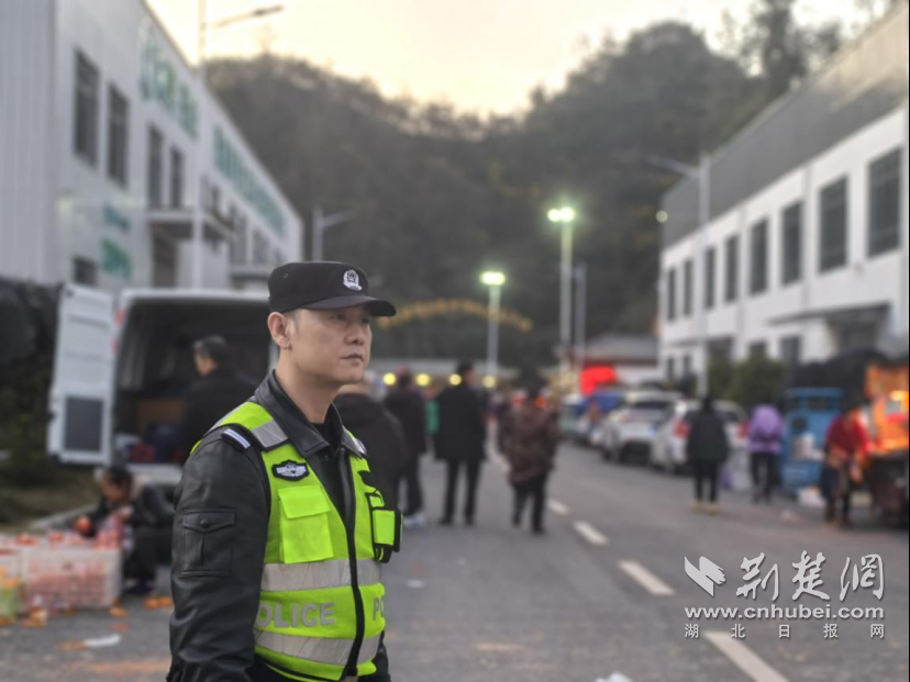 市场内,人声鼎沸;市场外,芭蕉派出所教导员向坤正和同事一道,维持着市场内外的交通秩序,一旁停靠的巡逻警车上,滚动播放着交通安全警示片。