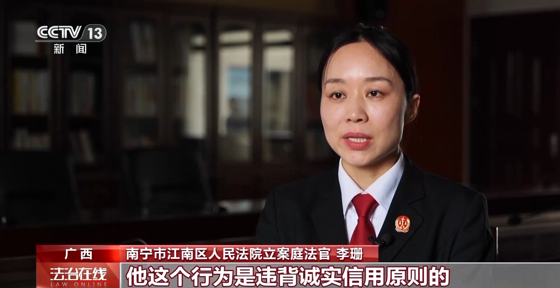 南宁市江南区人民法院立案庭法官 李珊:原告拒不配合物业公司返还财产,又以物业公司侵害其财产权为由向法院起诉,要求物业公司赔偿其财产损失,他这个行为是违背诚实信用原则的。