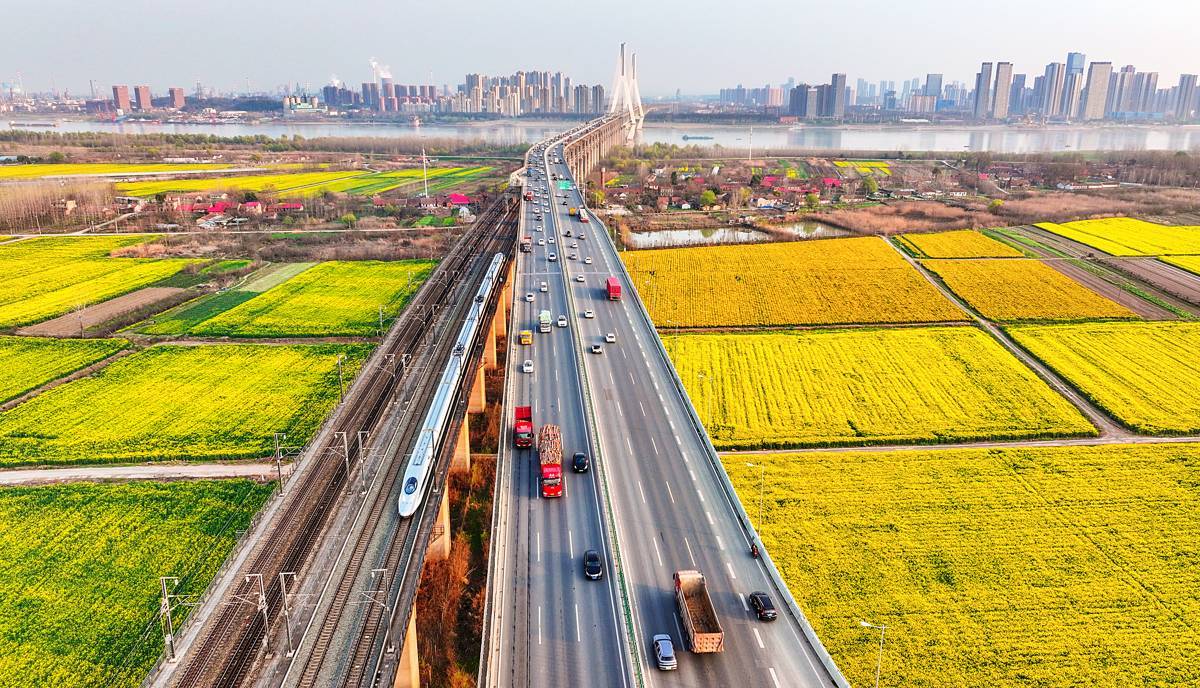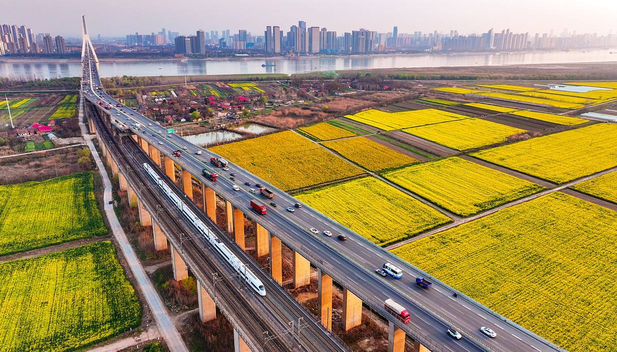 仲春时节,湖北省多地油菜花竞相绽放。列车在油菜花海中穿行,勾勒出荆楚大地生机勃勃的春日景象。