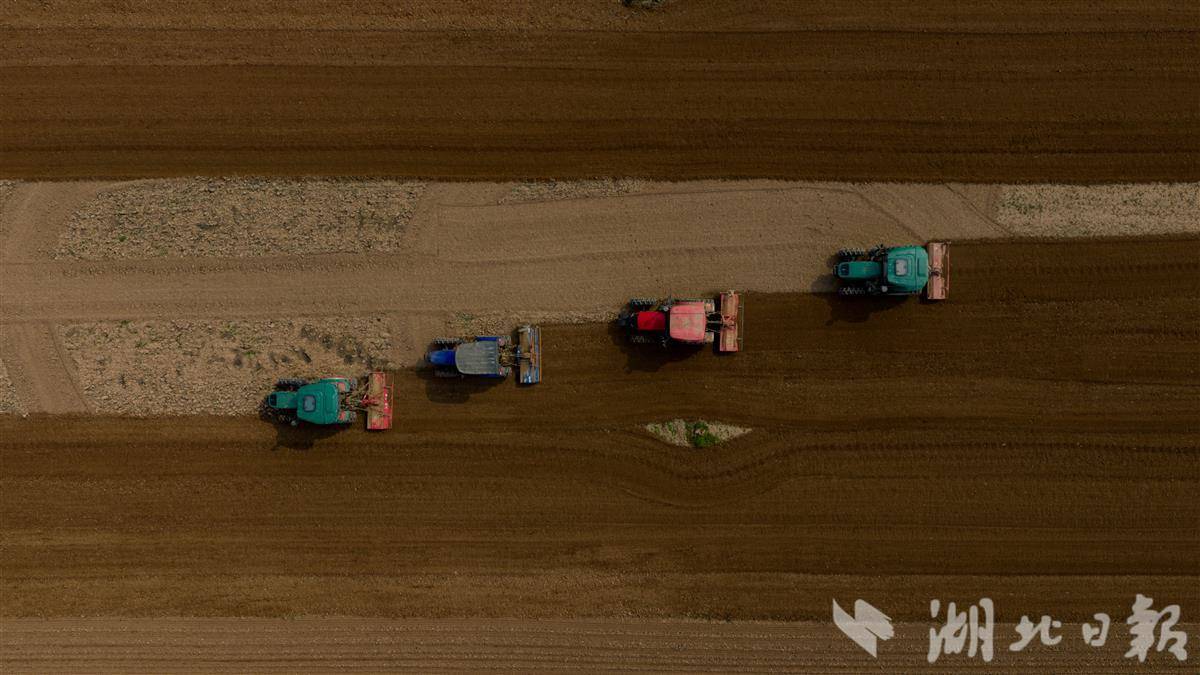 春和景明,沃野生香。3月12日,当阳市坝陵街道群益村田野上春意盎然,四台旋耕机开足马力穿梭田间,开展精细化翻耕作业,正式拉开当地春季蔬菜栽种序幕。作为“中国莴苣之乡”,群益村依托机械化推行规模化种植,成为全市蔬菜产业春耕标杆。目前,当阳市蔬菜在田面积达10万亩,已完成春播3.5万亩。(湖北日报全媒记者 刘曙松 通讯员 李莉 向冰钰 摄)