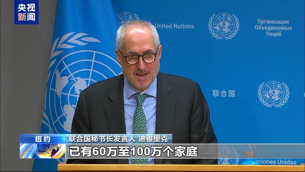 联合国秘书长发言人 迪雅里克:根据联合国难民署的初步统计,目前在伊朗境内,已有60万至100万个家庭因持续冲突而暂时流离失所,相当于大约320万人。随着冲突的持续,这一数字很可能继续上升,这无疑将进一步增加人道主义需求。
