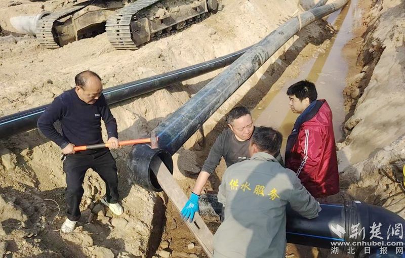 据悉,为保障顺利推进,红安县自来水公司主动靠前,从3月12日上午9时至晚间19时,红安县自来水公司人员野外不间断施工,圆满完成地下管道降坡改造与新管铺设任务,为重点工程扫清障碍。
